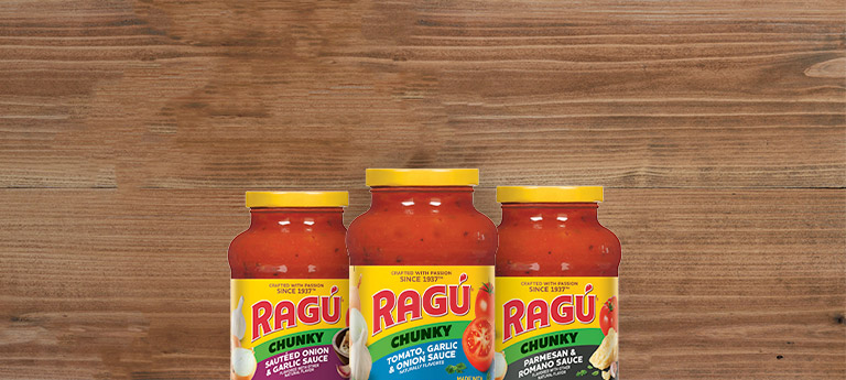 Discover the hearty, satisfying flavors of RAGÚ Chunky Sauces, where each jar is packed with delicious, chunky vegetables and savory herbs. Designed to bring a burst of texture and taste to your meals, RAGÚ Chunky Sauces are perfect for those who love their pasta sauces robust and full of vegetables.